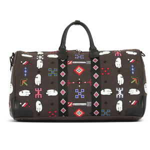 This duffle bag was originally a rug I created, inspired by my African roots. This rug was reconstructed into the duffle bag you see today, which is by far the most technical and highest quality product I have ever designed. It is fully embroidered and made from authentic wool.